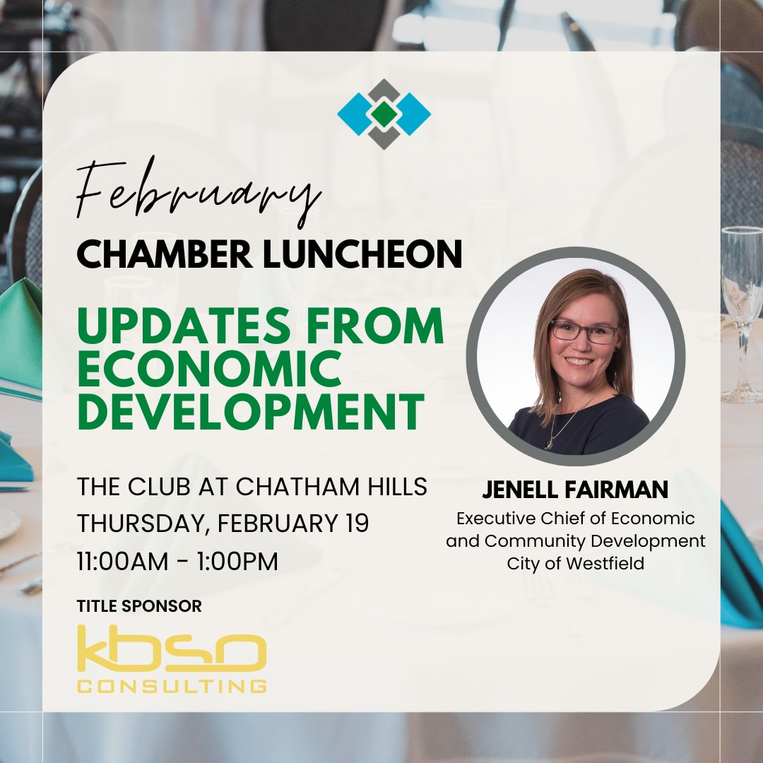 Join us for an enriching experience at our upcoming Chamber Luncheon, where both Westfield Chamber members and others in the community are invited to converge for an afternoon of meaningful connections. This month we will be joined by Jenell Fairman, Executive Chief of Economic and Community Development at the City of Westfield.